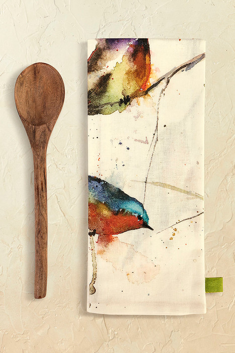 The brightest hues of nature add joy to your kitchen, in these watercolor prints by Oregon artist Dean Crouser. A beautiful yet practical home accent or hostess gift. Cotton/linen towel about 27″ x 17″, machine wash; wood spoon 12″ long, hand wash.